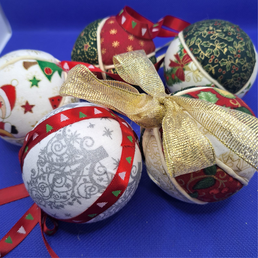Handmade Fabric Christmas Baubles - 4 Pack + 1 Free