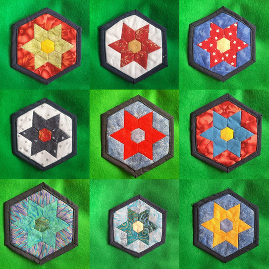 Handmade Quilted Hexagon Fabric Coasters - Set of 4
